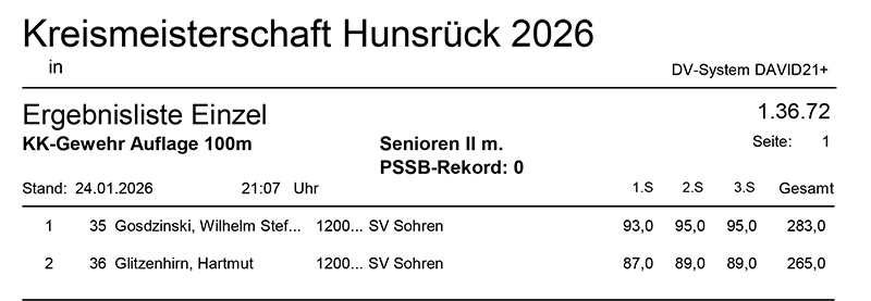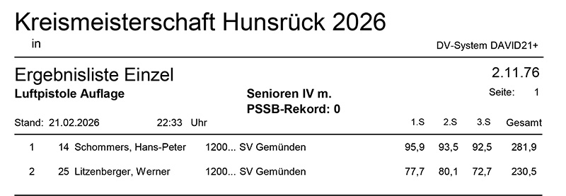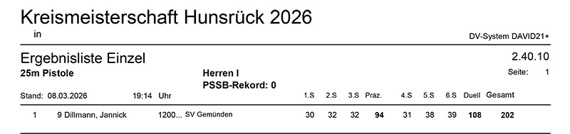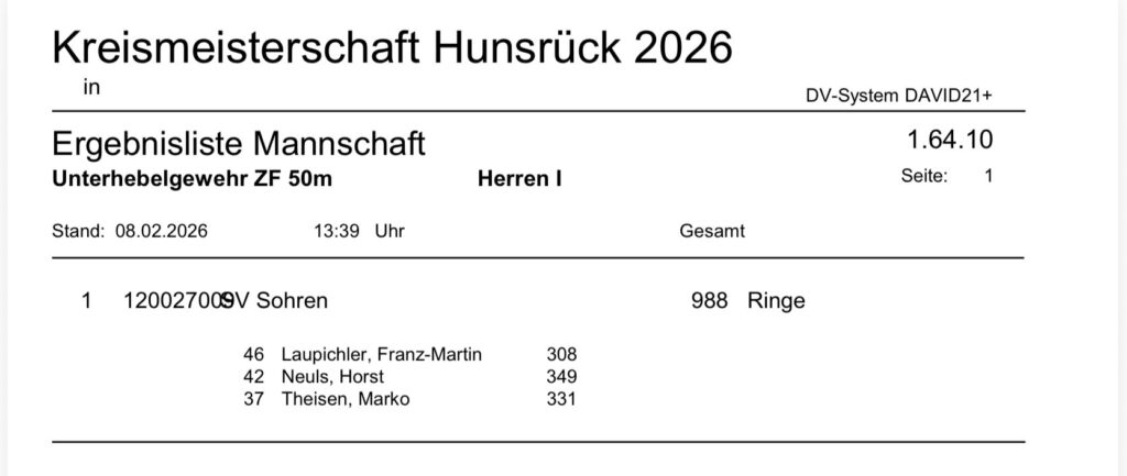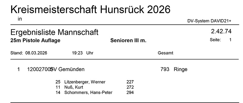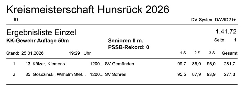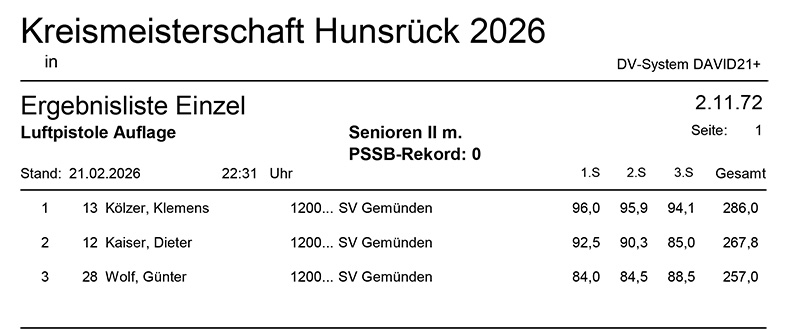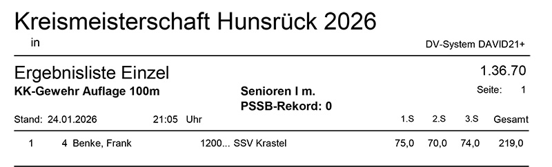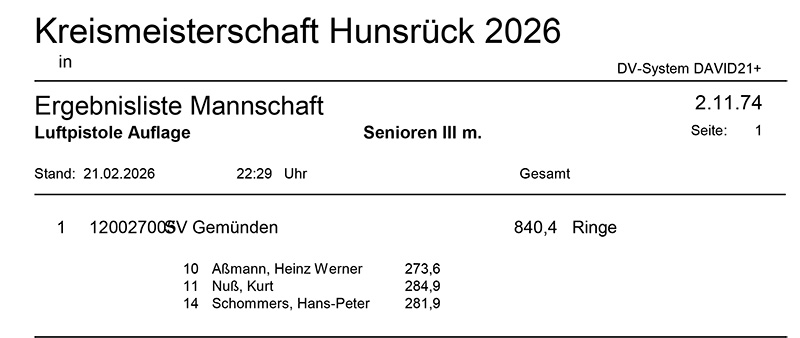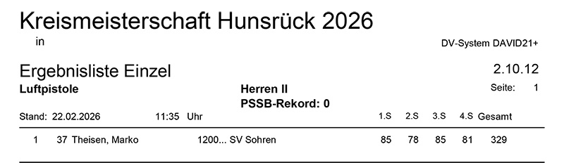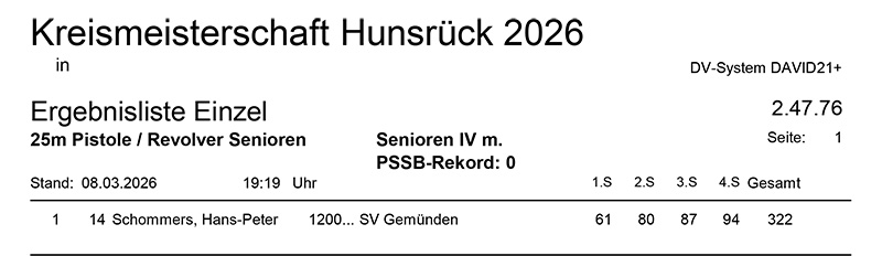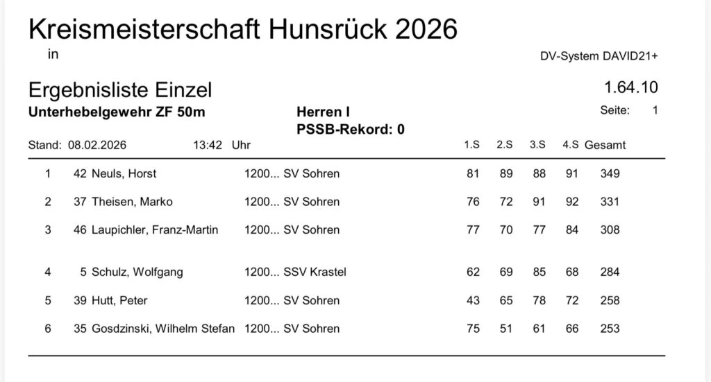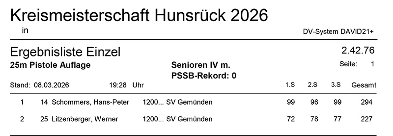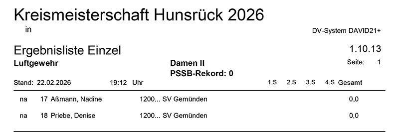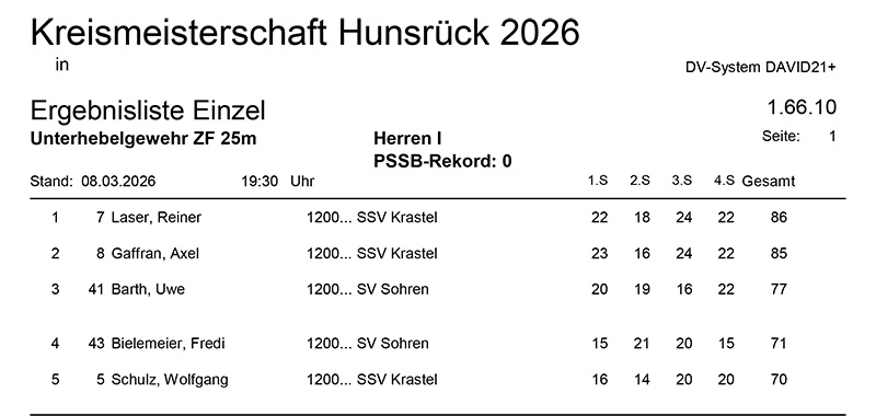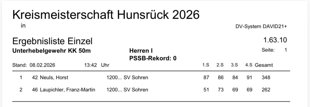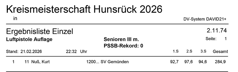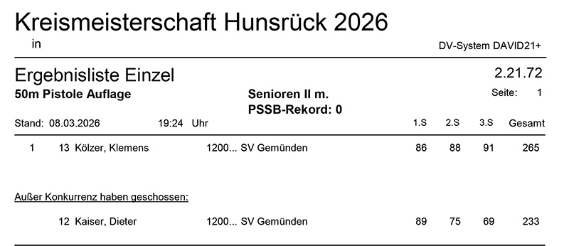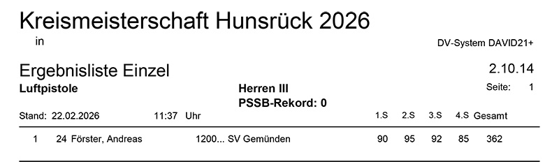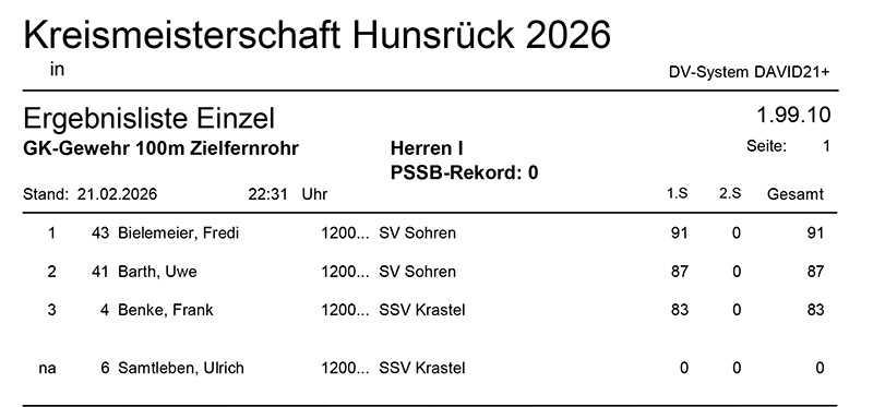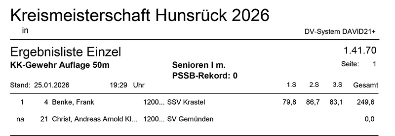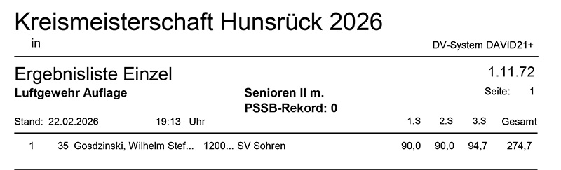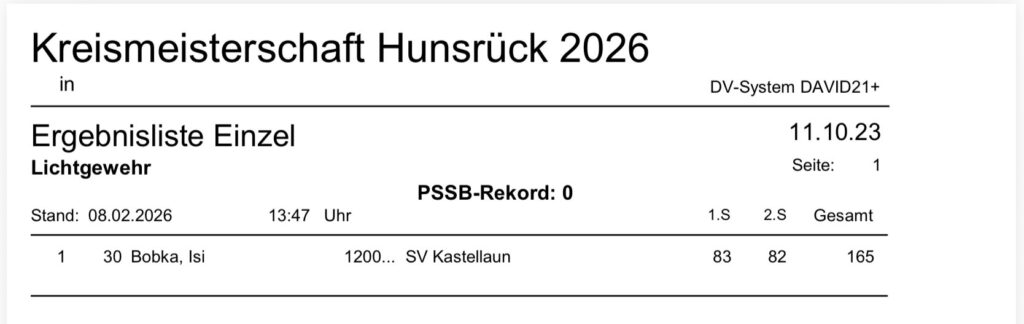 Aktuelle Ergebnisse der Kreismeisterschaft (Kreis 2700) für das Jahr 2026!